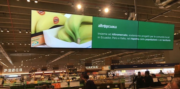 La comunicazione in-store, affidata a pannelli digitali non si limita a promuovere l’insegna e i prodotti, ma invita la clientela a smaltire in "maniera corretta” gli imballaggi. E dietro le casse, collocate lateralmente, tre maxi schermi con contenuti multimediali intrattengono i clienti al momento del pagamento della spesa. Digitale è anche l’informazione sui prezzi; particolarmente dettagliata quella che riguarda l’acqua minerale, con la lista completa delle quotazioni per marca e formato.