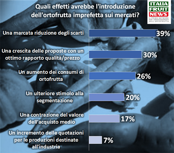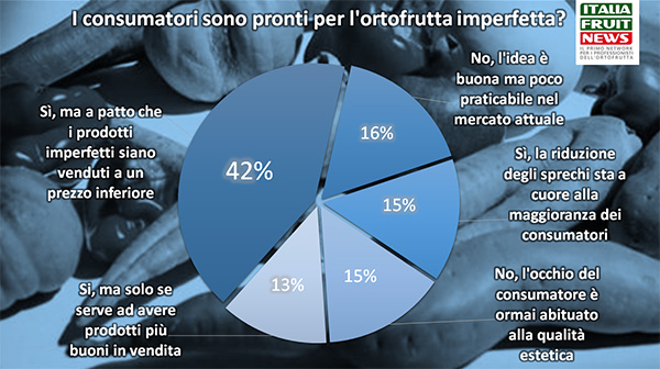 Il mercato, però, per come è strutturato ora non è fatto per l'ortofrutta imperfetta: il 16% della filiera ritiene l'idea buona, ma poco praticabile proprio per le caratteristiche del mercato attuale e un operatore su sei pensa che l'occhio del consumatore si sia ormai abituato alla qualità estetica dei prodotti ortofrutticoli.