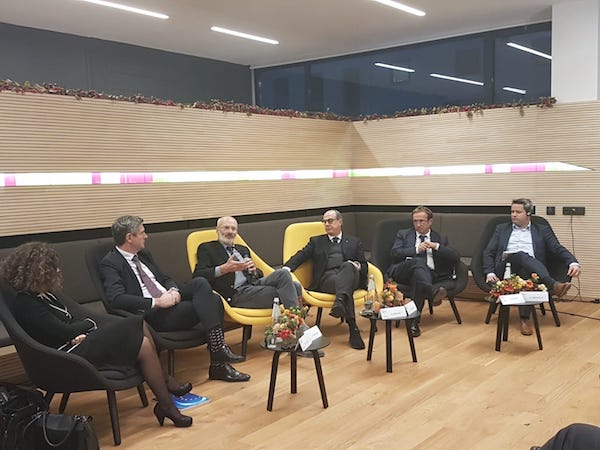 Al convegno sono intervenuti Giorgio Mercuri, presidente Alleanza cooperative agroalimentari - che ha ricordato come la sostenibilità, trasversale a tutte le filiere cooperative, sia ancora poco comunicata ai consumatori e come non debba esser slegata dall’obiettivo del sostegno di un reddito equo ai produttori, in modo da esser percepita non solo come un vincolo per gli agricoltori ma un vero fattore di successo – Arnold Schuler, Assessore agricoltura Provincia Autonoma Bolzano, Herbert Dorfmann, membro Commissione Agricoltura del Parlamento Europeo, Paolo De Castro, vicepresidente della Comagri del Parlamento Ue, Philippe Appeltans presidente del Gruppo Ortofrutta Copa-Cogeca, Alessandro Dalpiaz, Direttore Assomela.