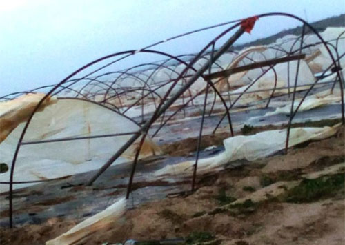 Non è andata sicuramente meglio al Sud-est della Sicilia, cuore pulsante della produzione orticola. Il forte vento (si parla di una quarantina di nodi l'ora) ha infatti scoperchiato più di un centinaio di serre a Pachino, Ispica, Portopalo e Rosolini. Si segnalano perdite anche per il gelo e la neve, caduta nella giornata di sabato, e per la grandine che ha compromesso alcuni campi seminati.
