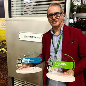 Stefano Chiocchini, Ceo di Serranova, con i premi vinti al Flomart Future Village Award 2019