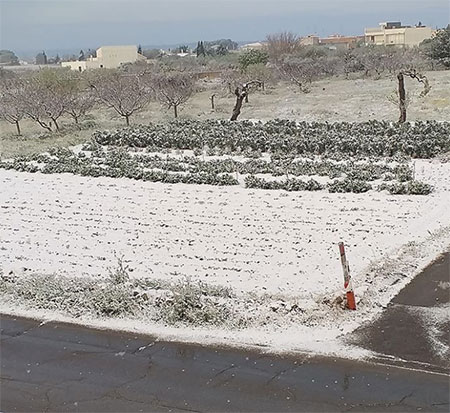 In tutta l’area Meridionale la situazione è estremamente variegata. Sicuramente il versante adriatico ha subito molti più danni rispetto a quello tirrenico a causa di una perturbazione che ha portato nevicate dalle Marche fino alla parte Nord della provincia di Bari. Proprio la Puglia è la regione meridionale più colpita dal questo improvviso ritorno di freddo, dove si è registrato il brusco abbassamento delle temperature fino a -1 gradi, quando due giorni fa si registravano anche 23 gradi. Le situazioni più gravi si notano nelle province di Bari, Bat e Foggia dove occorrerà verificare i danni provocati sia alle colture orticole in piena raccolta come cicorie, carciofi cavoli e bietole, sia alle colture arboree in fase di fioritura o allegagione come ciliegio, mandorlo ed albicocco.