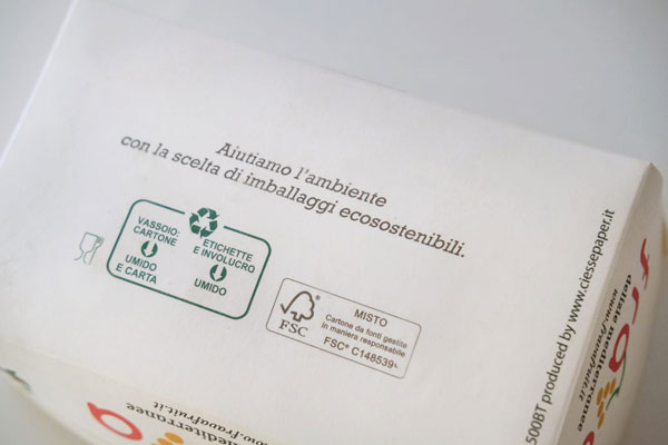 Ora finalmente le confezioni potranno essere gettate tutte nell’organico considerato che tutte le parti sono sostenibili: dalle etichette compostabili Natureflex, alle vaschette prodotte in cartoncino di fibra vergine riciclabile sia nella carta che nell’umido, fino alle pellicole utilizzate per la copertura che sono in cellulosa “home compost”.