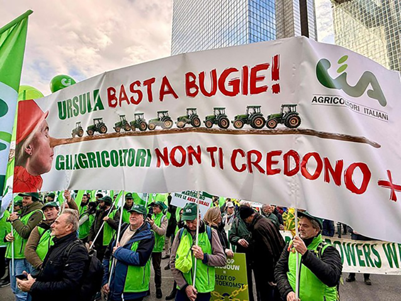Con migliaia di agricoltori in piazza e slogan durissimi contro la presidente della Commissione Ursula von der Leyen, Coldiretti ha denunciato quella che definisce una deriva tecnocratica dell’Unione europea, sempre più distante dai cittadini e dalle imprese agricole. Secondo l’organizzazione, il taglio complessivo di 90 miliardi di euro alla Pac – di cui 9 miliardi a carico dell’Italia – mina la sovranità alimentare del continente e apre la strada a un aumento delle importazioni da Paesi extra-Ue privi di adeguati standard ambientali, sanitari e sociali.
