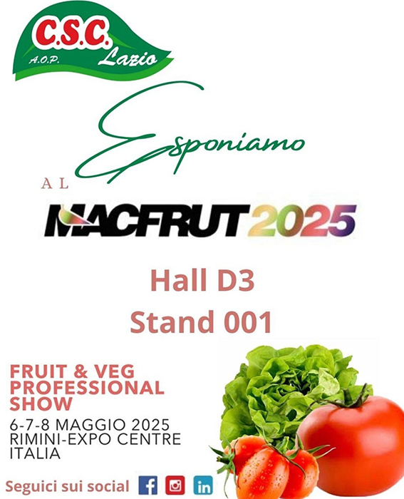 La A.O.P. CSC Lazio, principale realtà orticola della Piana di Fondi, con una produzione annua di circa 40mila tonnellate, è pronta a sbarcare al Macfrut, la fiera di riferimento per il settore ortofrutticolo che apre i battenti domani.