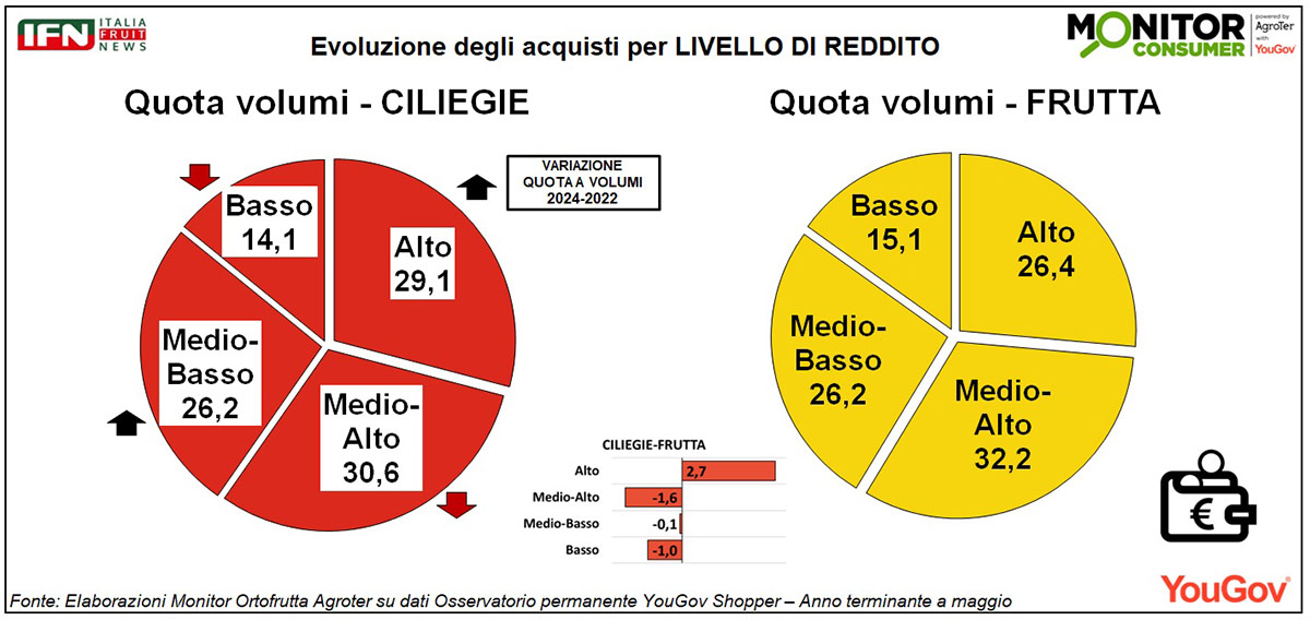 Polarizzazione degli acquisti di ciliegie nelle famiglie ad alto reddito