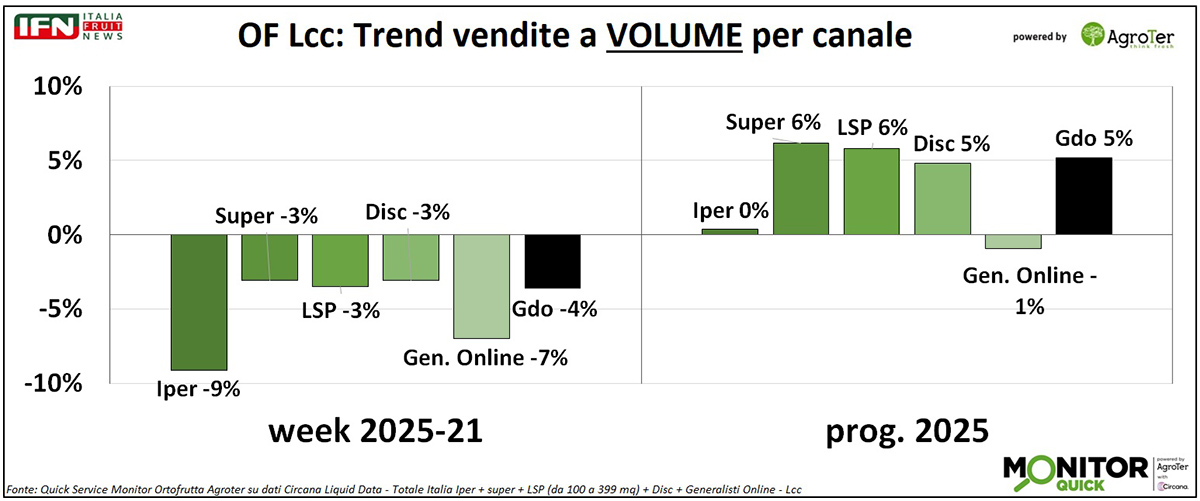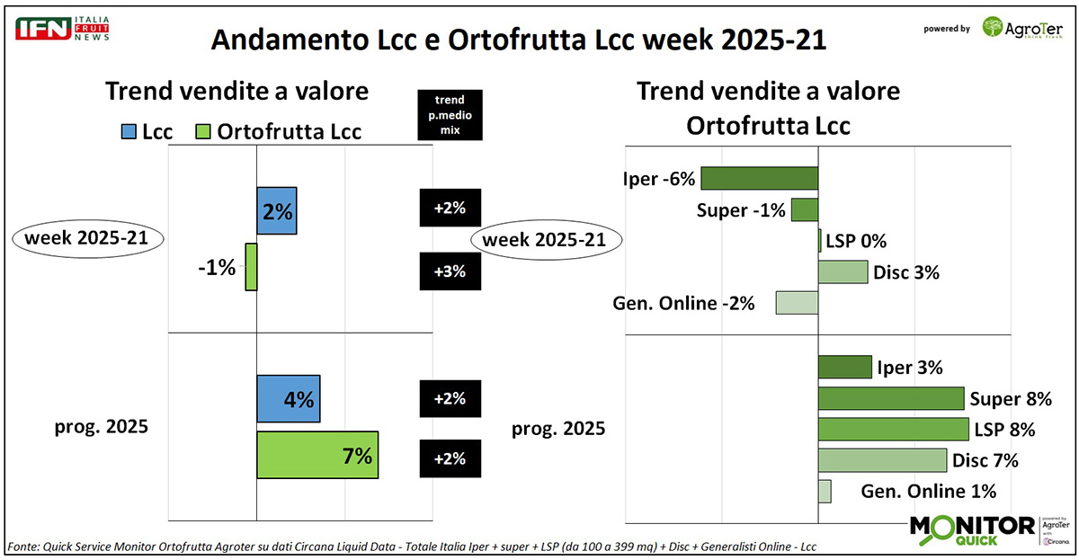 Anche nella week 21 l’ortofrutta Lcc arranca