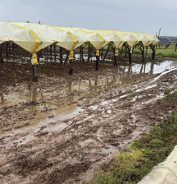 Le conseguenze sono visibili nei campi: ristagni idrici diffusi, terreni saturi e difficoltà di accesso alle aziende agricole. In queste condizioni, oltre al blocco dell’impollinazione, aumenta il rischio di sviluppo di patologie fungine, con particolare preoccupazione per fenomeni di muffa che potrebbero portare a cascola fiorale e moria delle piante.