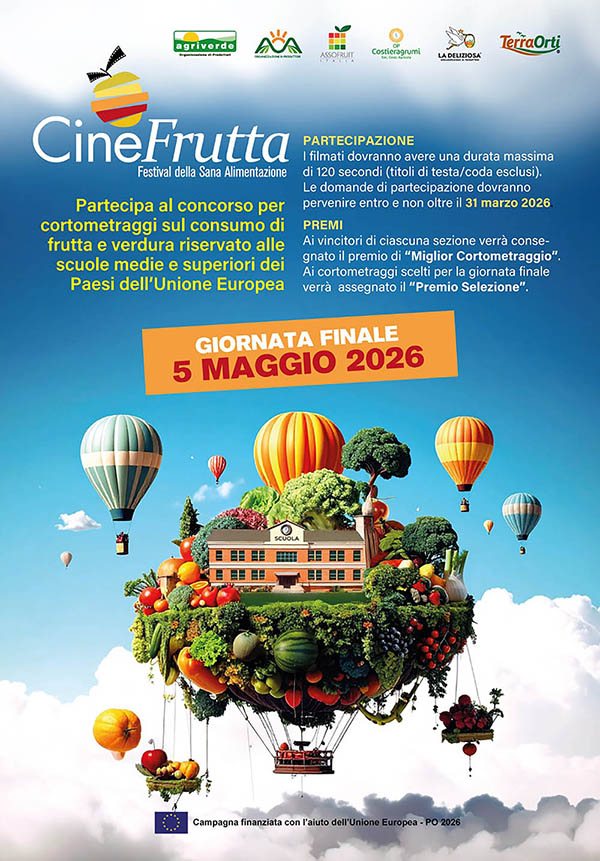 Si rinnova l’appuntamento con Cinefrutta Days, l’iniziativa che unisce la promozione di una sana alimentazione alla creatività cinematografica nell’ambito del progetto Cinefrutta. Promossa dalle organizzazioni di produttori Agriverde, AOA, AssoFruit Italia, Costieragrumi, La Deliziosa e Terra Orti, la manifestazione ha l’obiettivo di sensibilizzare i giovani al consumo di frutta e ortaggi attraverso un’esperienza educativa e divertente.