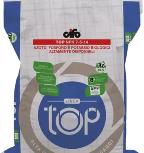Accanto a TOP N abbiamo TOP NPK 7-5-14™ (Clicca qui per approfondire) che arricchisce la gamma con un concime pellettato di nuova concezione, ideale per frutteti, vigneti e oliveti. La sua ricchezza in potassio biologico e la cessione modulata di fosforo e azoto assicurano una nutrizione costante e bilanciata. Anche in questo caso la molecola APR svolge una triplice azione: stimola la microflora utile del terreno, favorisce la formazione di radichette assorbenti e complessa i nutrienti rendendoli più disponibili.
