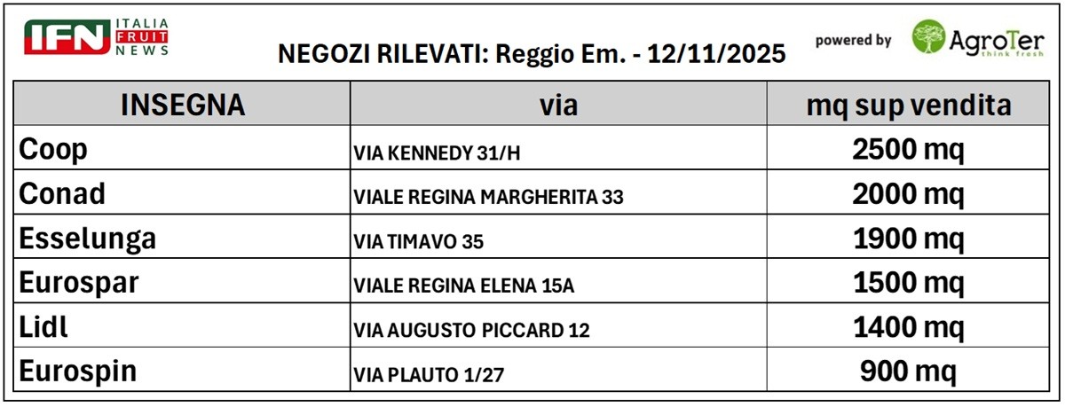 Nei giorni scorsi abbiamo effettuato un monitoraggio su sei punti vendita della piazza di Reggio Emilia: quattro tra superstore e supermercati più due discount, tutti con superfici di vendita nella media per i format individuati. L’indagine mette in luce una differenza netta – e rara da osservare con questa evidenza nel reparto ortofrutta – tra le strategie assortimentali dei due canali. I supermercati e superstore dedicano ampi spazi e numeriche rilevanti alla categoria frutta e vegetali secchi, mentre i discount sembrano attribuirle un ruolo marginale, con investimenti decisamente più contenuti.
