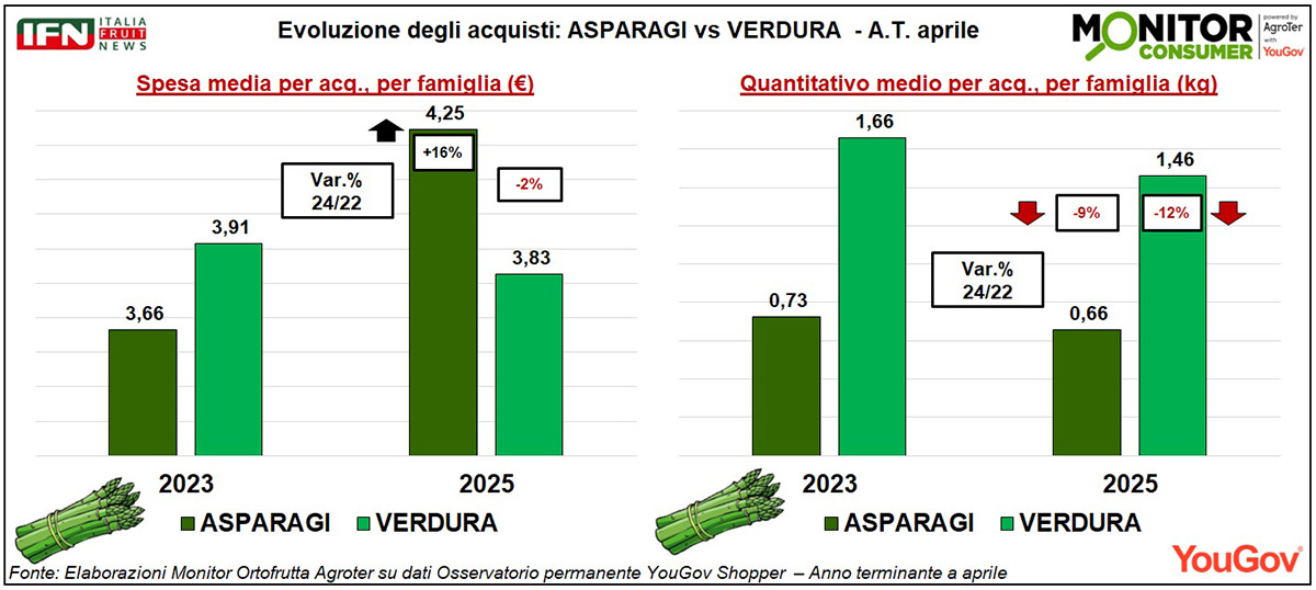 Spesa e quantità medie per acquisto: meno asparagi, ma più cari