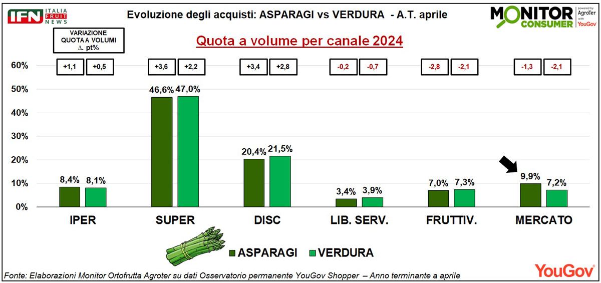 Quote per canale: il mercato resiste negli asparagi, ma supermercato e discount avanzano