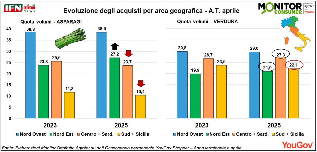Lungo lo Stivale: polarizzazione degli acquisti di asparagi è al Nord