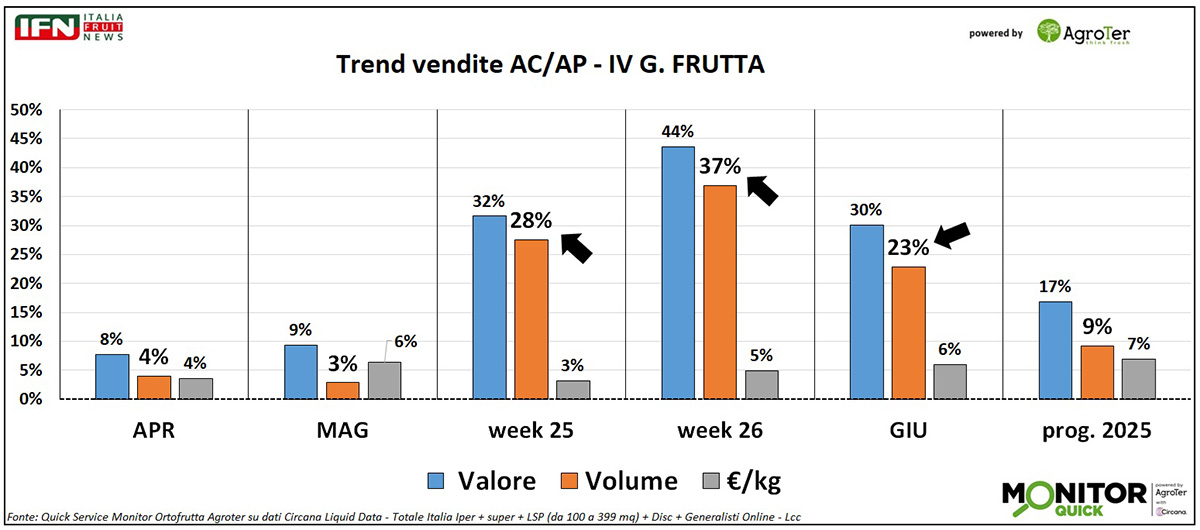La frutta pronta accelera a giugno: volumi in crescita del 23%