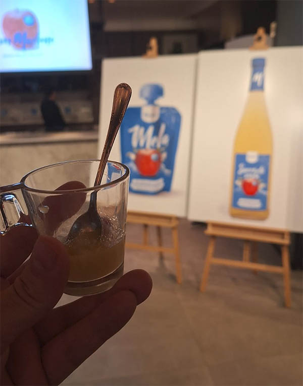 La gamma comprende puree, succhi e chips di mela, rigorosamente senza conservanti né zuccheri aggiunti. La stampa di settore ha avuto la possibilità di degustare in anteprima alcune varianti delle puree: 100% mela, mela e albicocca, mela e frutti di bosco, mela, banana e fragola.