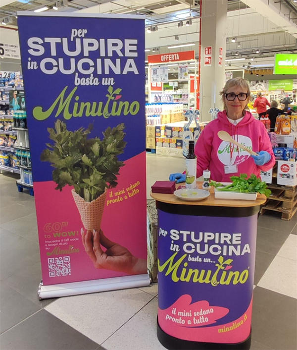 Due giornate di contatto diretto con il pubblico per raccontare un’innovazione che guarda al futuro del fresco. Venerdì 10 e sabato 11 aprile Minutino by Fortini è stato protagonista di un’attività promozionale in quattro punti vendita strategici tra Emilia e Romagna – CentroBorgo, CentroNova e CentroLame di Bologna e Ravenna ESP – portando il “mini sedano pronto a tutto” a diretto contatto con i consumatori.