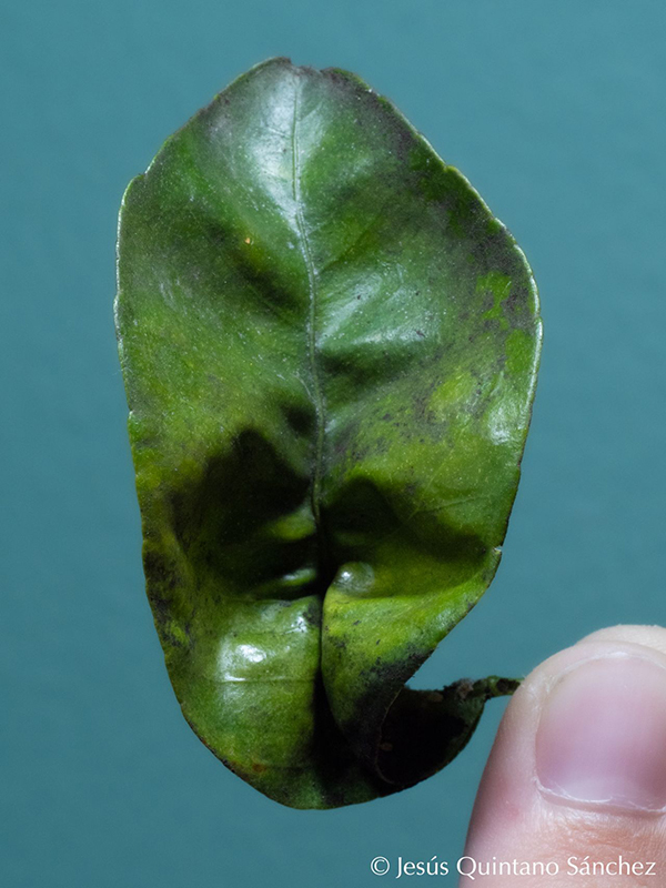 I segnali della presenza di Paracoccus burnerae sono visibili ma possono facilmente essere confusi con quelli causati da altre cocciniglie. Le punture di alimentazione sulle foglie provocano deformazioni a carico della nervatura principale, che può torcersi fino a 90° o 180°, mentre sui frutti giovani possono comparire ammaccature e leggere depressioni superficiali. Segni che, in mancanza di un'identificazione corretta della specie, rischiano di essere sottovalutati o mal interpretati.