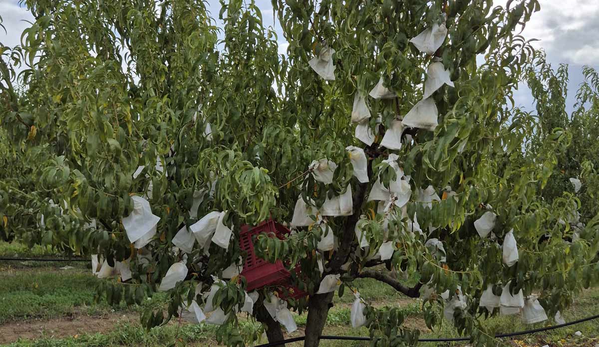Tra maggio e luglio, i frutti ancora piccoli vengono insacchettati uno ad uno, un’operazione minuziosa che protegge la pesca da insetti, funghi e agenti atmosferici, riducendo al minimo l’uso di fitofarmaci. Il risultato è un frutto sano, dalla polpa croccante e profumata, riconoscibile anche per i segni lasciati dal sacchetto sulla buccia che diventano un carattere distintivo, un marchio di fabbrica.