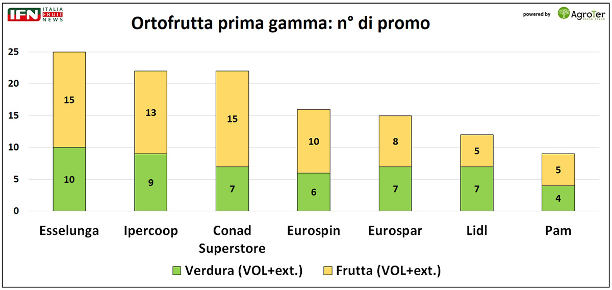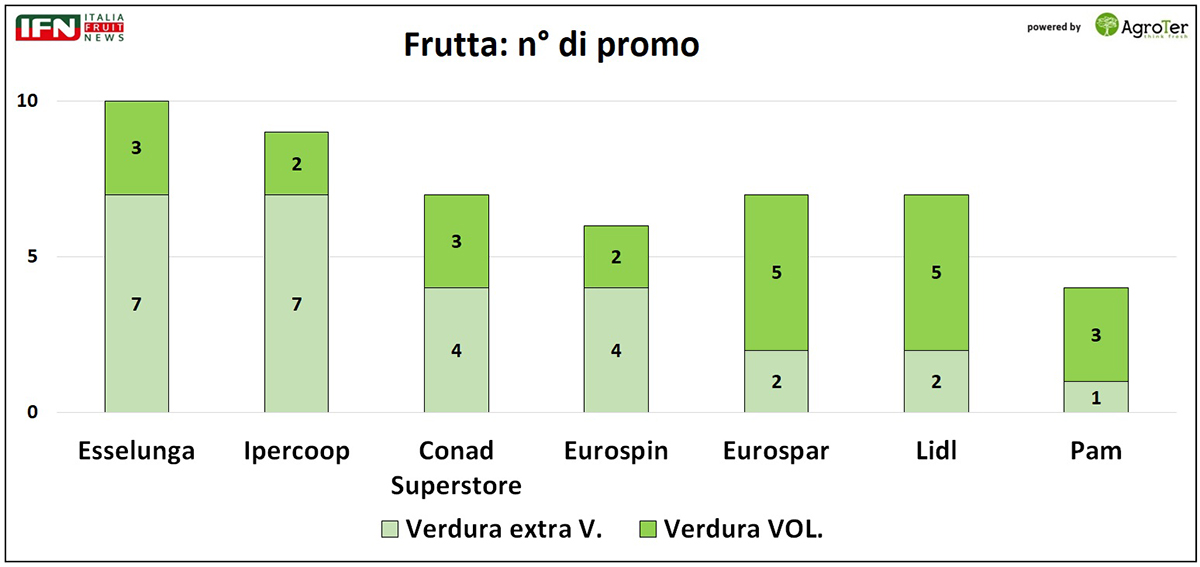Senza dubbio, la maggiore variabilità legata alla produzione di frutta, spinge le insegne a privilegiare le promozioni interne, decisamente più flessibili nella gestione rispetto a quelle a volantino, che richiedono una programmazione più rigida e anticipata.