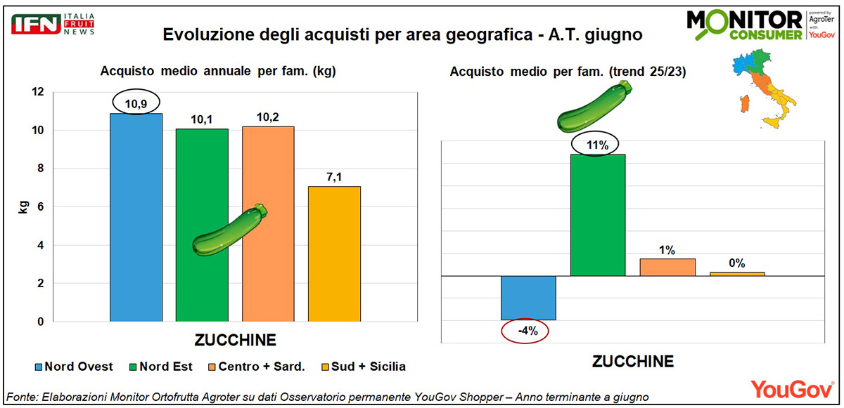 Lungo lo Stivale: quantitativi più bassi di zucchine al Sud, acquisto medio in crescita al Nord Est