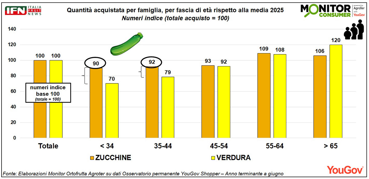 La versatilità in cucina, la facilità di preparazione – con consumi da crudo in costante aumento – e il gusto neutro, che si abbina facilmente a qualsiasi ingrediente, rendono la zucchina un ortaggio ideale per ogni piatto. Queste caratteristiche ne favoriscono il consumo anche tra le generazioni con meno tempo da dedicare ai fornelli. Nonostante ciò, l’indice di acquisto di verdure, comprese le zucchine, risulta ancora sotto la media tra le famiglie con meno di 55 anni, segnalando un potenziale di crescita significativo proprio in queste fasce d’età. (bf)