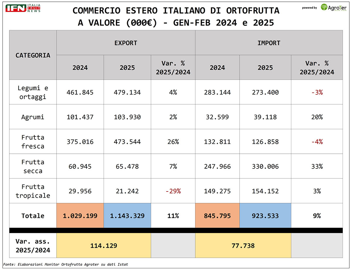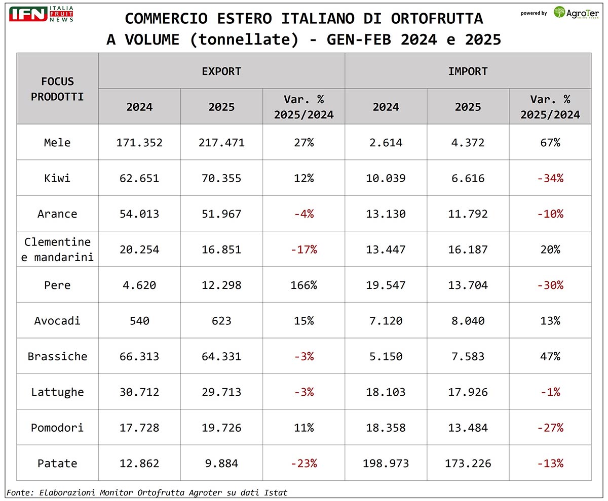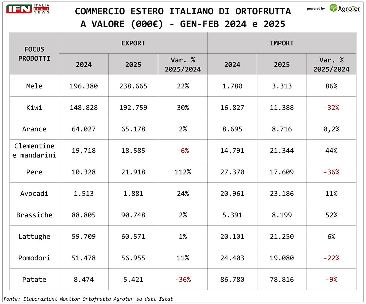 Vola il made in Italy ortofrutticolo nei primi due mesi del 2025