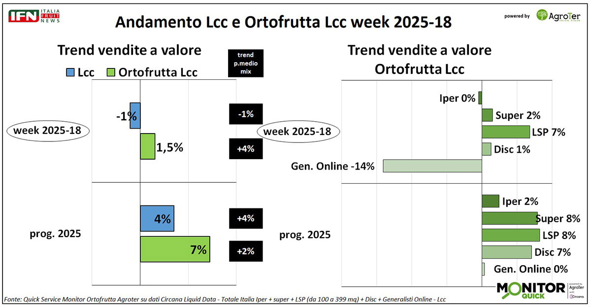 Week 18 : ortofrutta Lcc in difficoltà (-3% a volume)