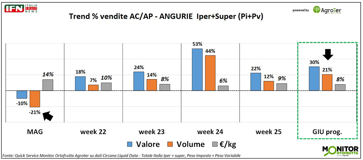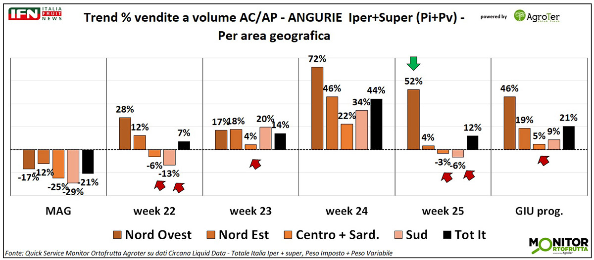Week 25: boom di angurie al Nord-Ovest, frenata al Sud