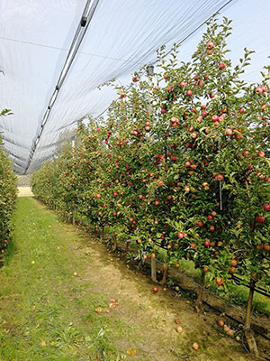 Stefano Anconelli del Canale Emiliano Romagnolo ha ben riassunto la strutturazione del frutteto dimostrativo realizzato nell’ambito del progetto S3O, dove sono stati installati un impianto di irrigazione di nuova generazione (IoT) oltre che reti polifunzionali antigrandine, antinsetto e antipioggia. Tali strutture hanno permesso di cambiare il microclima all'interno del frutteto. Le reti antipioggia hanno infatti portato ad una riduzione di circa il 50% della radiazione solare incidente portando ad un abbattimento della richiesta evapotraspirativa del 45% rispetto all'ambiente esterno ed un 24% rispetto ad un frutteto sotto sola rete antigrandine con conseguenti restituzione irrigue ridotte fino ad un 50%.
