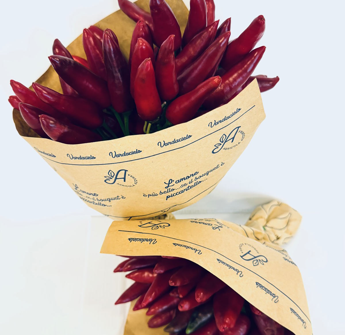 Un’idea semplice ma rivoluzionaria. Ideato da Agricola Azzurra nel 2018, il bouquet di peperoncini è un esempio unico in Italia di un prodotto ortofrutticolo capace di coniugare tradizione agricola e design, con l’ambizione di portare un prodotto di uso comune in cucina su un livello ulteriore, trasformandolo in un’idea regalo dal gusto dolcemente piccante.