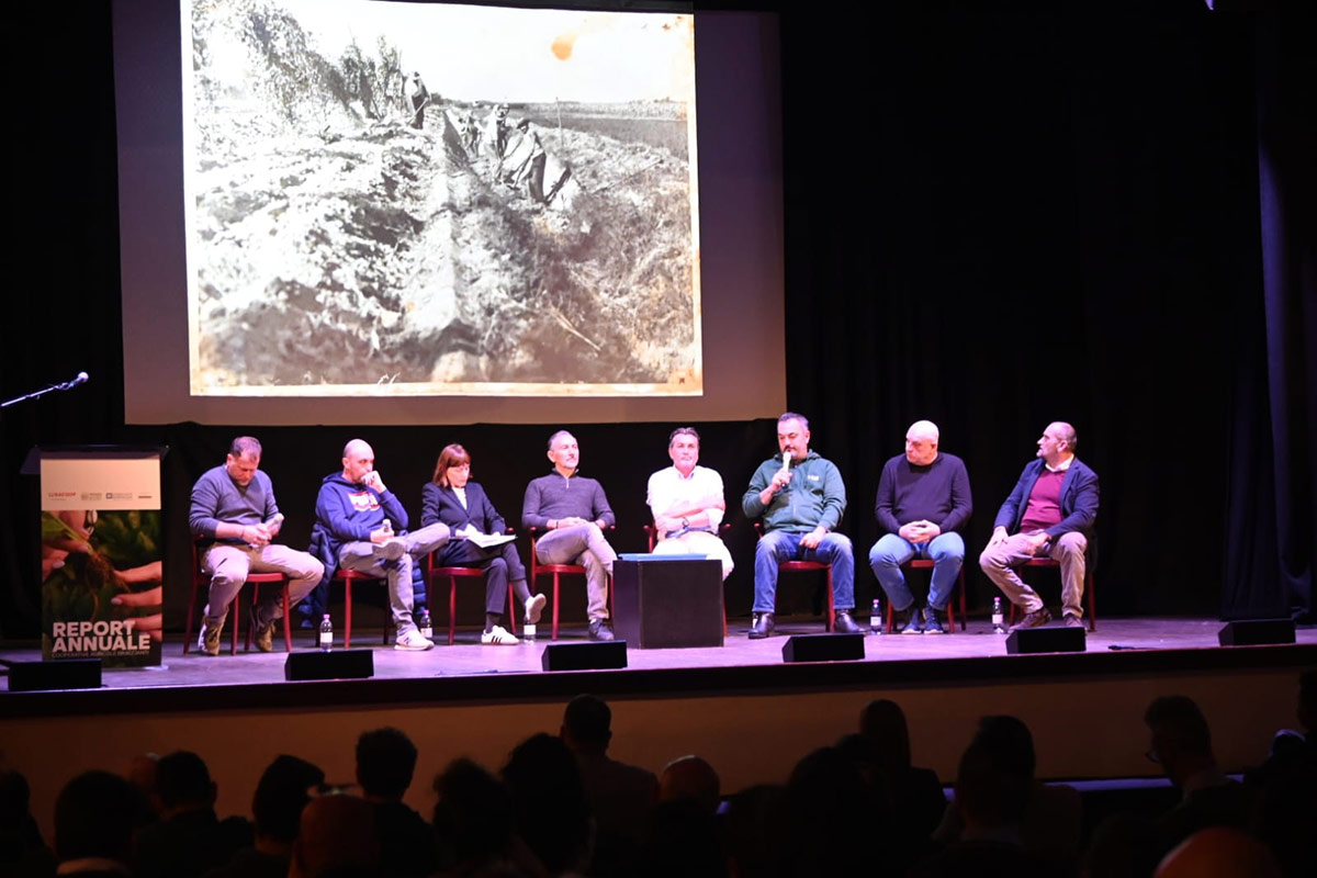 Immagini di ieri e di oggi si sono susseguite nella tavola rotonda con i presidenti delle cooperative braccianti del territorio: Andrea Caroti (Comprensorio Cervese), Massimo Pepoli (Campiano), Fabrizio Galavotti (Terra), Rudy Maiani (Agrisfera), Massimo Bezzi (Bagnacavallo), Mauro Parisi (Fusignano) e Gianluca Tedaldi (Massari).