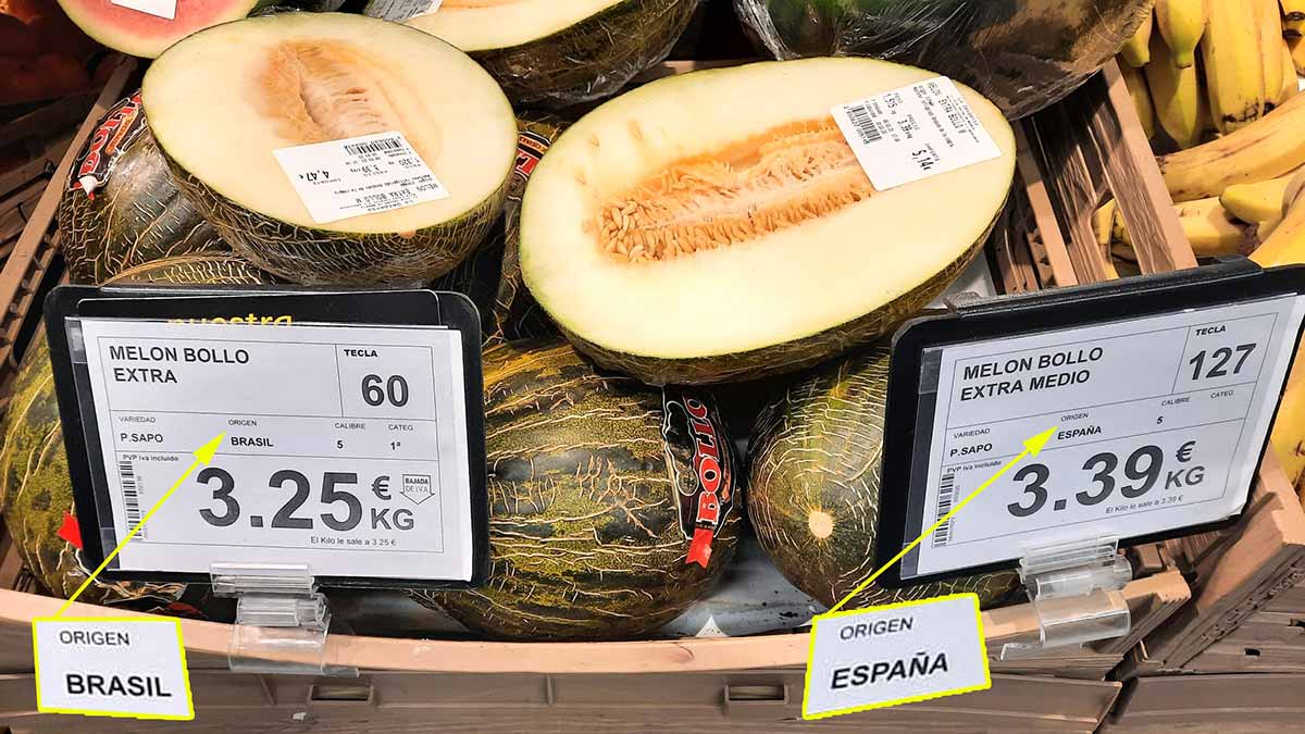 Nella foto di apertura: Cartellino a sinistra: mezza anguria, origine Spagna - Cartellino a destra: anguria intera, origine Senegal (fonte Coag)
