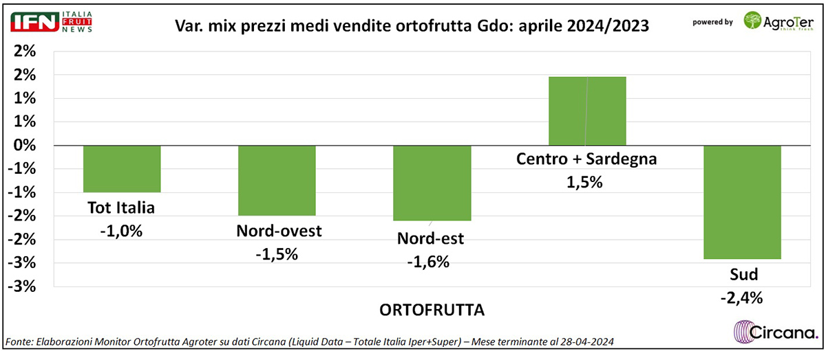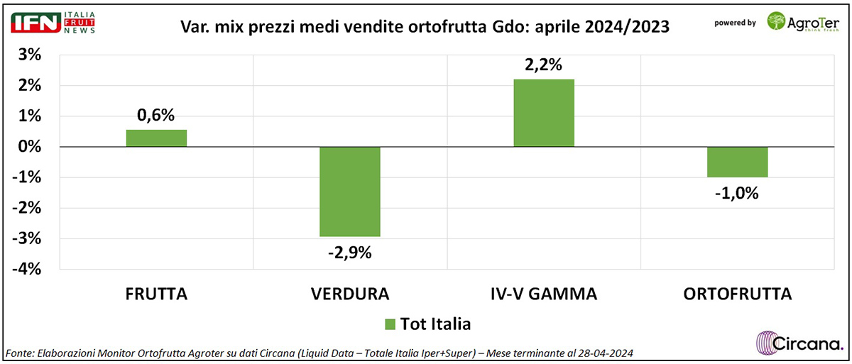 Aprile, reparto ortofrutta in deflazione ma volumi ancora in flessione