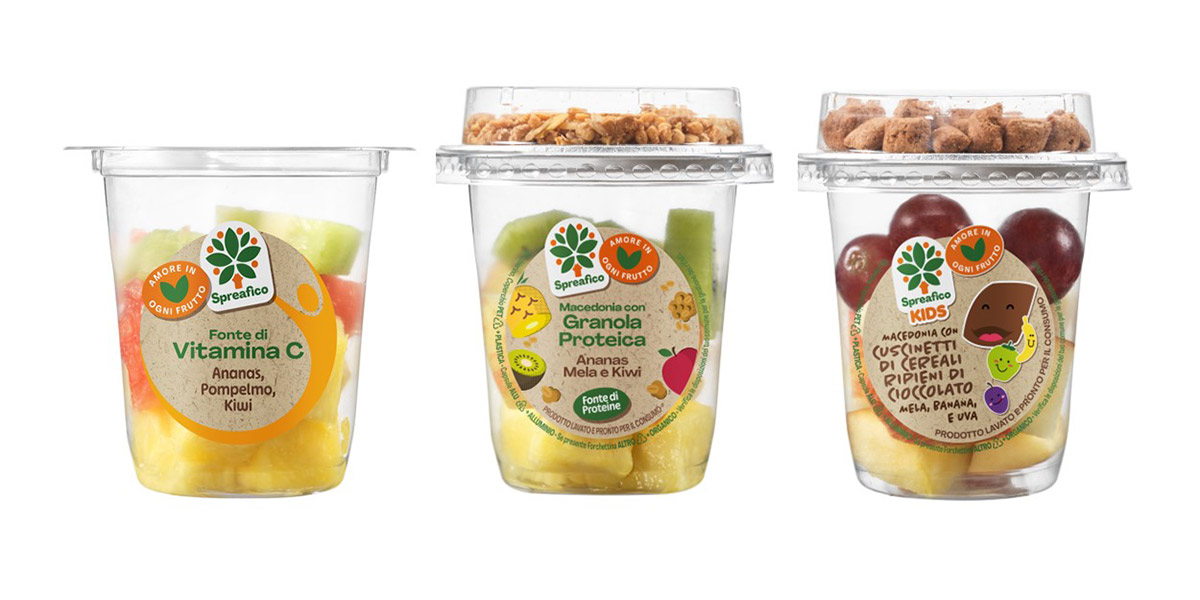Ad aprile in casa Spreafico è arrivata anche una novità, ovvero le nuove proposte di quarta gamma declinate nella linea benessere (solo macedonia), linea snack (macedonia con granola proteica o al cioccolato) e linea snack bambino (frutti preferiti dai piccoli + granola cioccolato + cuscinetti di cereali ripieni di cioccolato); clicca qui per approfondire .