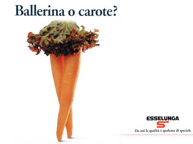 Ballerina o carote? Così, Armando Testa aveva titolato per la carota negli anni ‘90, mentre sviluppava una fortunata seria di affissioni dedicata ai prodotti ortofrutticoli per l’azienda di Pioltello.