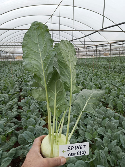 - Spinet Ex 592: nuovo ibrido di cavolo rapa per trapianti da metà novembre in poi. È una varietà molto stabile, con ottima costanza di risultati e discreta resistenza alla peronospora. Buona adattabilità alle diverse condizioni; infatti, ha dimostrato un buon comportamento anche con climi non prettamente invernali. Portamento eretto della pianta con foglie di colore verde scuro e bulbo verde chiaro di forma rotonda schiacciato ai poli. Grazie alle sue caratteristiche, la specie è versatile e permette facilità e velocità di lavorazione.