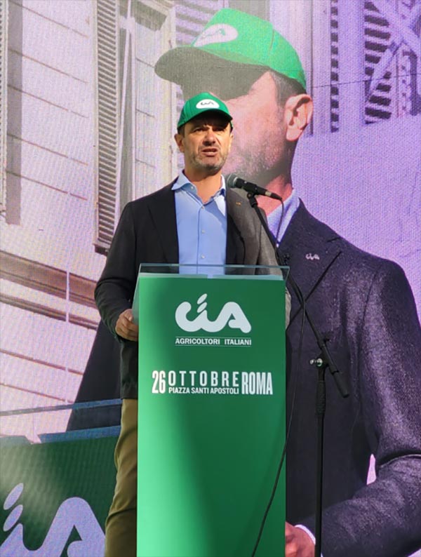 IL MESSAGGIO DEL PRESIDENTE – “Noi non siamo il problema, ma la soluzione!”, ha ripetuto più volte dal palco il presidente nazionale, Cristiano Fini, rivendicando con forza il ruolo chiave del settore, anche nella transizione green. “A dispetto di tutte le fake news -ha detto Fini- gli agricoltori non inquinano, rispettano da anni gli impegni ambientali anche mettendo a rischio i loro profitti; producono energie alternative e non sprecano acqua, ma la usano per produrre cibo di qualità. Senza agricoltura, il Made in Italy non può esistere e la sicurezza alimentare non ha garanzie; non c’è presidio del territorio e custodia del paesaggio, anche contro il dissesto idrogeologico; le aree interne si spopolano ed economia e società non sopravvivono. Abbiamo, dunque, buoni motivi per reclamare più attenzione per le nostre aziende agricole. Deve rimetterle al centro l’Italia così come l’Europa, che dovrebbe stare dalla nostra parte, invece di continuare a imporre norme e regolamenti dall’alto”.
