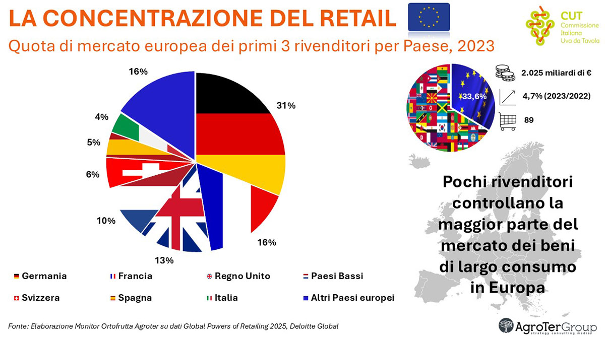 L'intevento centrale è statto sviluppato da Roberto Della Casa, dell’Università di Bologna nonché direttore di IFN, che ha portato all’attenzione della platea alcuni casi di aggregazione di successo da cui poter trarre utili indicazioni per il comparto dell’uva da tavola. “Elemento chiave per comprendere la necessaria evoluzione organizzativa del sistema ortofrutticolo è la progressiva concentrazione della distribuzione moderna sia su scala europea - dove ormai pochissimi gruppi per paese controllano la maggior parte del mercato - che, seppur in ritardo, in ambito nazionale”, ha ricordato Della Casa.