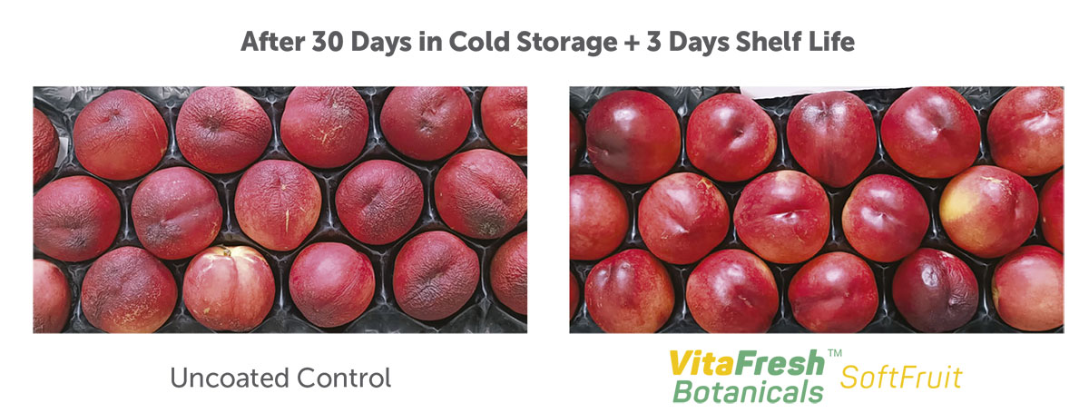 Per venire in soccorso ai produttori, AgroFresh, ha lanciato sul mercato VitaFreshTM Botanicals SoftFruit, il rivestimento commestibile post-raccolta ideale per la frutta con buccia sensibile come, per l’appunto, le drupacee.