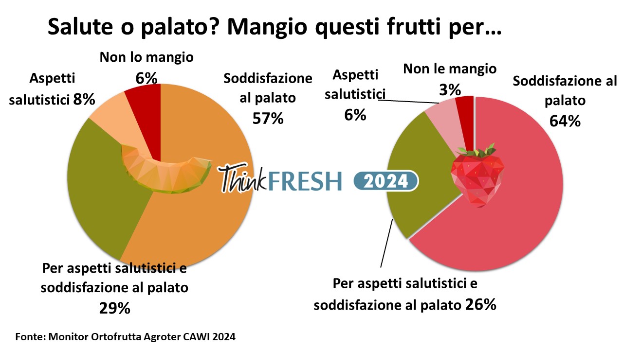 Per esempio, il nostro Monitor Ortofrutta ci dice chiaramente che per melone e fragole lo scopo dell’acquisto è soddisfare il palato, lo dichiara oltre il 50% del campione, mentre la salute vale meno del 10%, da cui l’importanza vitale del gusto rispetto ad altre caratteristiche di questi due prodotti.