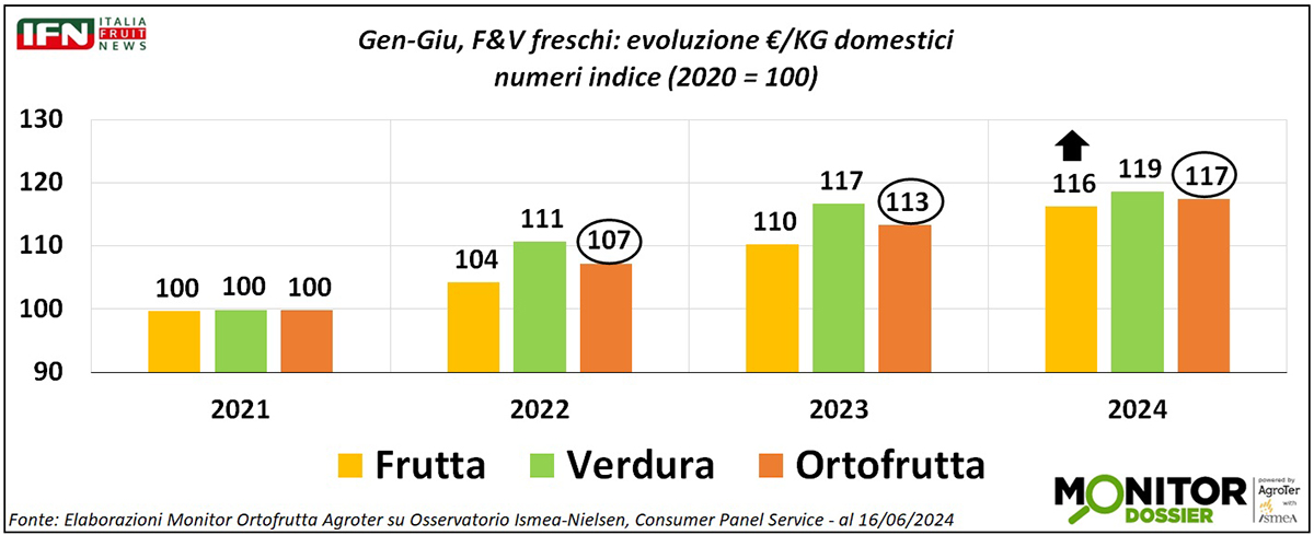 L'analisi del primo semestre 2024 rispetto a quello 2020 mostra gli effetti dell'inflazione