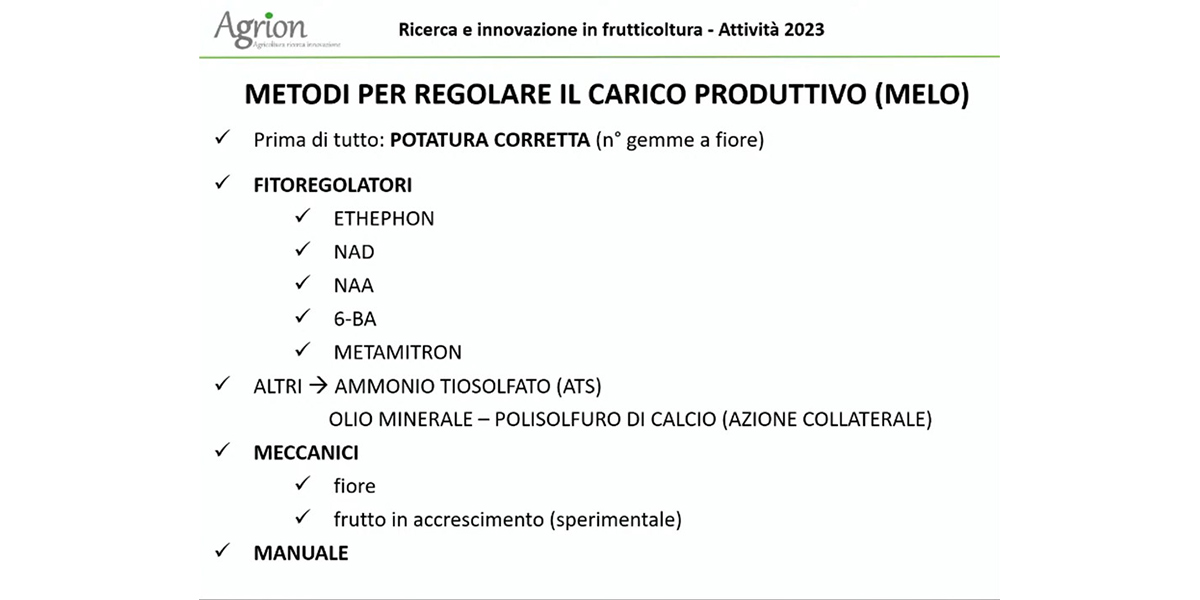 “In conclusione, nel melo attualmente gli strumenti a disposizione per il diradamento sono sufficienti, ma non sempre garantiscono una costanza di risultato soprattutto in annate così imprevedibili come le ultime”.