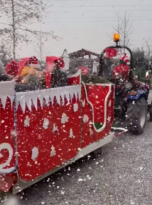 Anche da Sadira società agricola si respira questa aria, condivisa da tanti influencer sui canali social che le hanno fatto visita, promuovendo i loro prodotti, allestimenti e anche la possibilità di pranzare con Babbo Natale o di fare un giro su carrozze trainate dal trattore invece che dalle tradizionali renne.