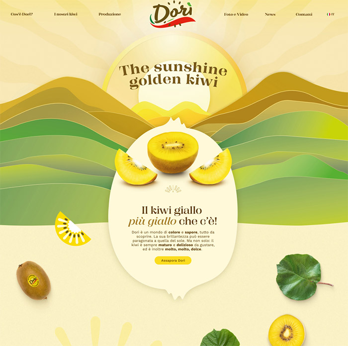 Nuova era comunicativa per il marchio Dorì, il quale si è dotato di nuovi canali social, nuovo key visual e un nuovo sito web. Il kiwi a polpa gialla Dorì, famoso per la propria dolcezza, vanta oltre 950 ettari di coltivazioni in tutto il mondo (Italia, Francia, Portogallo, Spagna, Grecia, Cile, Australia, Sud Africa). Il crescente favore che il frutto Dorì riscontra presso i consumatori di tutto il mondo ha spinto l’azienda Dorì International, che gestisce la varietà, a puntare su una nuova comunicazione digitale. In primis è stato modificato il key visual del marchio attraverso un focus sul sole e la luce, sottolineando il colore brillante della polpa del Dorì, e su un’immagine di alto posizionamento e raffinata, sottolineando le eccellenti caratteristiche gustative.