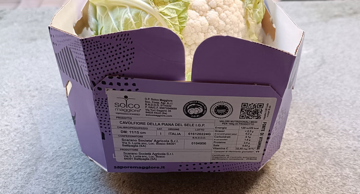 Un’areale vocato che produce da ottobre a maggio, ogni anno, circa 24 milioni di capolini e, per ora, l’obiettivo è di certificarne almeno la metà. Ma il progetto conta di espandersi: “Con la creazione del consorzio di Tutela il progetto è attivo a tutti gli effetti ed è aperto a tutti i produttori che ricadono all’interno dei comuni indicati dal Disciplinare di produzione – ha spiegato Attilio Astone, Responsabile commerciale e controllo qualità OP Solco Maggiore. Il primo passo è stato quello di far emergere la distintività del prodotto già attraverso una confezione in cartone “monocorimbo” che ci permette di comunicare i valori di questo cavolfiore. Infatti, abbiamo inserito una etichetta con i valori nutrizionali che sottolinea, per esempio, l’alto contenuto in vitamina C, e non dimentichiamo il QR code che permette al consumatore di scoprire la storia, le proprietà nutrizionali e le ricette di questo fantastico prodotto”.