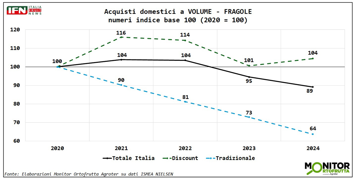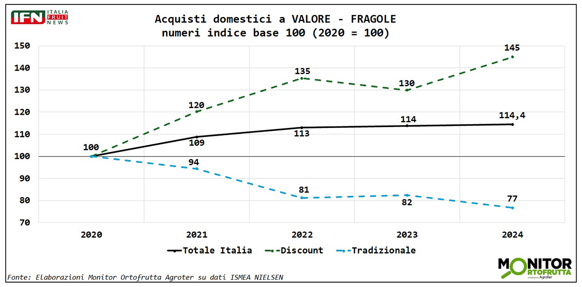 Questi dati dimostrano chiaramente come la grande distribuzione, e in particolare i discount, stiano consolidando la loro posizione nel mercato delle fragole, mentre il commercio tradizionale fatica a mantenere le proprie vendite.
