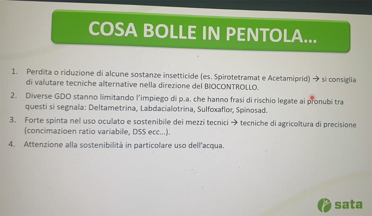 Alessandro Costanzo, Responsabile mezzi tecnici di Sata, ha spiegato il motivo che ha spronato ad approfondire il tema Glifosate: “Diverse insegne della Grande distribuzione organizzata hanno imposto forti limiti per questo erbicida e alcune insegne l’hanno proprio rimosso. Così abbiamo deciso di andare incontro alle richieste e cercare di evidenziarne la sostenibilità tecnica ed economica”.