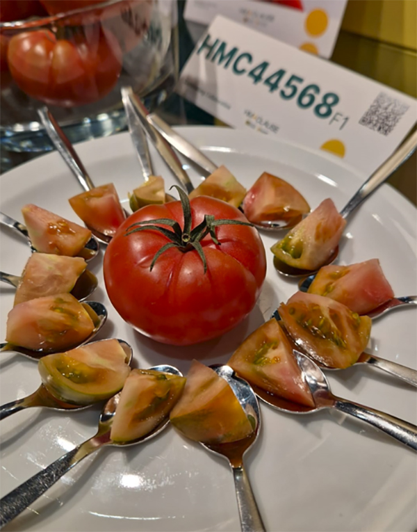Tra le novità che hanno acceso i riflettori, spicca il pomodoro Marmande “Pink”, un costoluto dalla tonalità rosa che non è passato inosservato. Questo pomodoro colpisce per il suo colore unico e per un profilo aromatico particolare, che unisce gusto a consistenza ottimale, offrendo così una nuova esperienza sensoriale al consumatore. Si tratta di un pomodoro ancora non presente in commercio ma solo in fase di prova.
