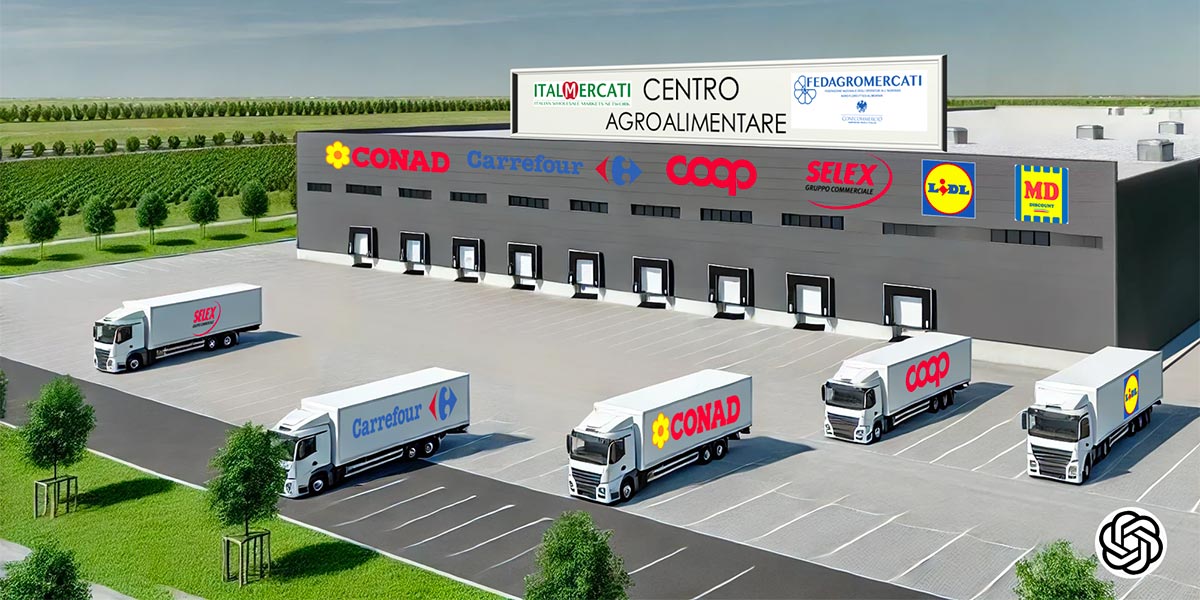 “Il primo ambito, in campo ortofrutticolo, dove l’IA sta facendo, e farà, la differenza riguarda la gestione della filiera – argomenta il fondatore di Agroter. Lo dico a ragion veduta, in quanto la lenta concentrazione nel settore è anche dipesa dalla dimensione dei dati, difficile da gestire; oggi superabile con IA, può ottimizzare enormemente questo elemento critico. Nel settore dell’agroalimentare si notano già i primi esempi di grandi aggregazioni “non usali", come quella fra Gran Terre, gruppo cooperativo e Parmacotto, azienda privata, che ha dato origine a un polo da oltre 1 miliardo di fatturato, con proiezione di superare i 2 miliardi nell’arco dei prossimi 5 anni. Ovviamente, una operazione che risponde alla concentrazione in atto nel mondo distributivo che, a sua volta, è in cerca efficienza. Ma finché ragioniamo nell’ordine delle centinaia di migliaia di colli per Cedi dove pensiamo di andare? I grandi Cedi della farmaceutica e dei mezzi di ricambio auto ragionano per milioni di colli ed è qui che l’IA potrebbe intervenire per sviluppare i centri agroalimentari del futuro: poche strutture - nella rete Itamercati - lungo la penisola, aperte h 24, dove si concentrano distributori e operatori professionali (i grossisti di Fedagro Mercati) in un’ottica di grandi hub logistici al servizio dell’ortofrutta; ChatGPT se la immagina come vedete qui sotto".